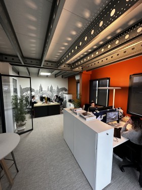 Notre Service d'architecture intérieur à crée un "showroom vivant" avec un agencement de bureaux et d'espaces ergonomique et convivial. Mais également une cuisine de bureau sur mesure et adapté aux besoins des collaborateurs.